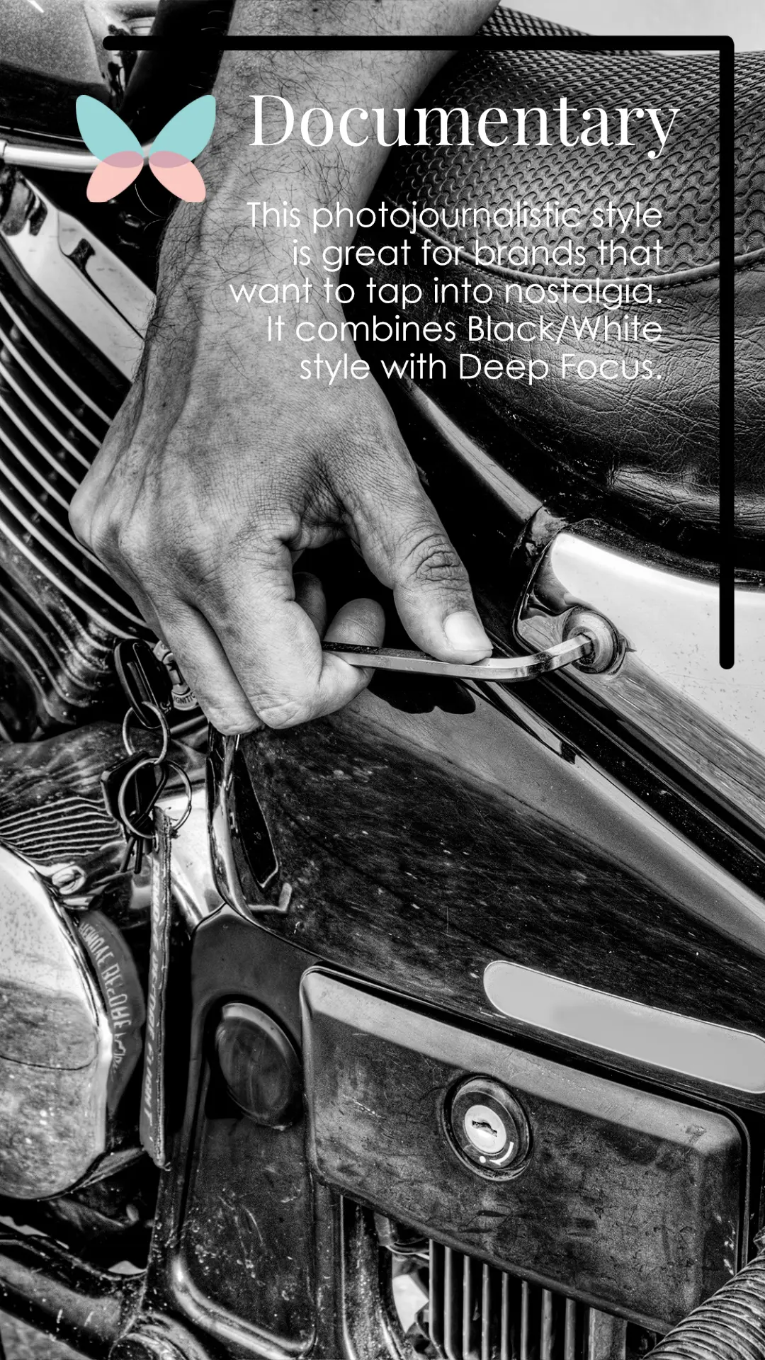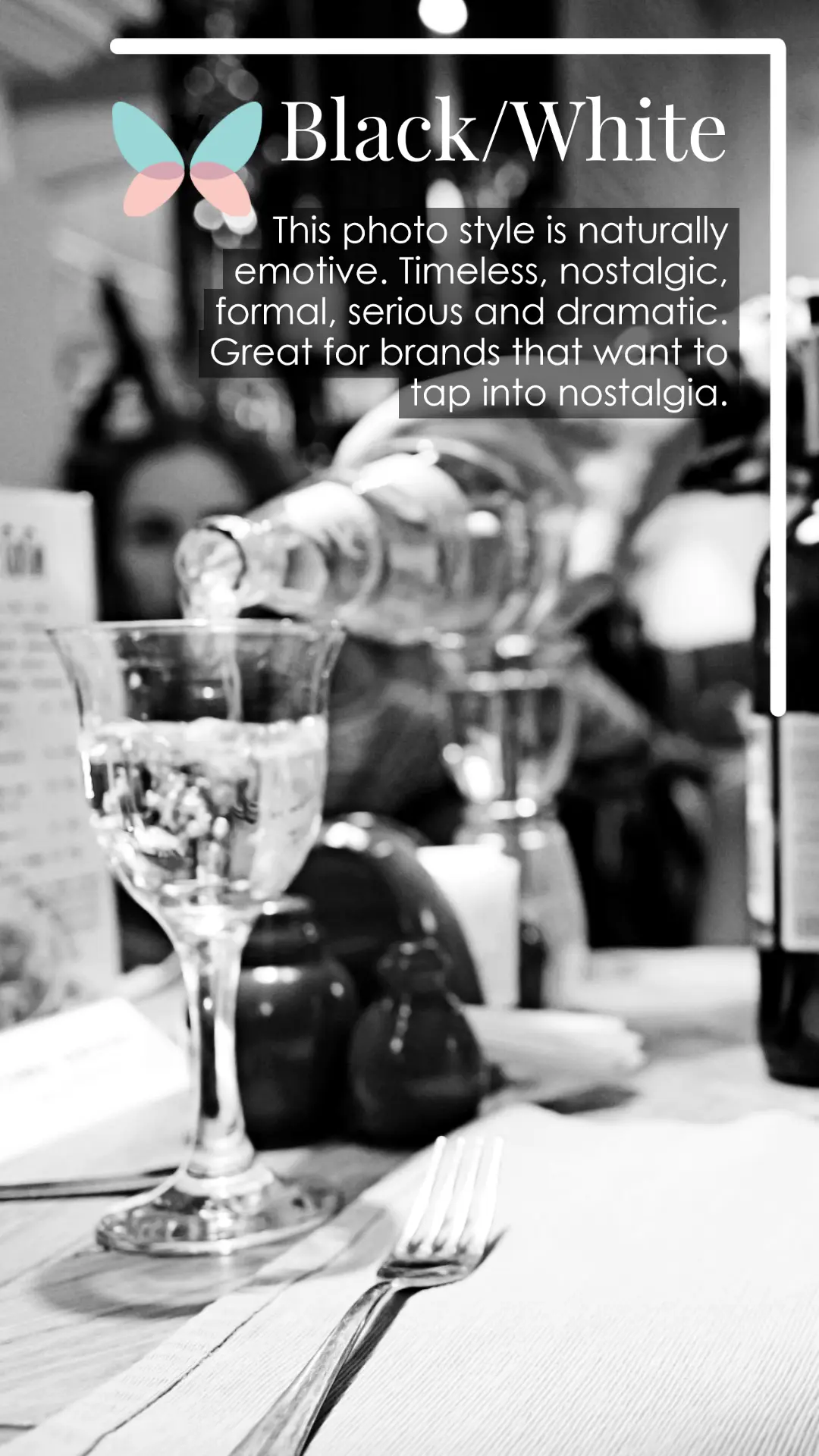 Brand imagery is all about telling your story and stirring up emotions with your audience. Remember when we talked about digging into your history and purpose? That’s your guiding star. It’ll help you find a photographer who gets your vision. It’ll also guide you in styling your photo sessions. Styling your photos is also a whole vibe. Here are some tips and examples of photo styles matched with the moods they create.