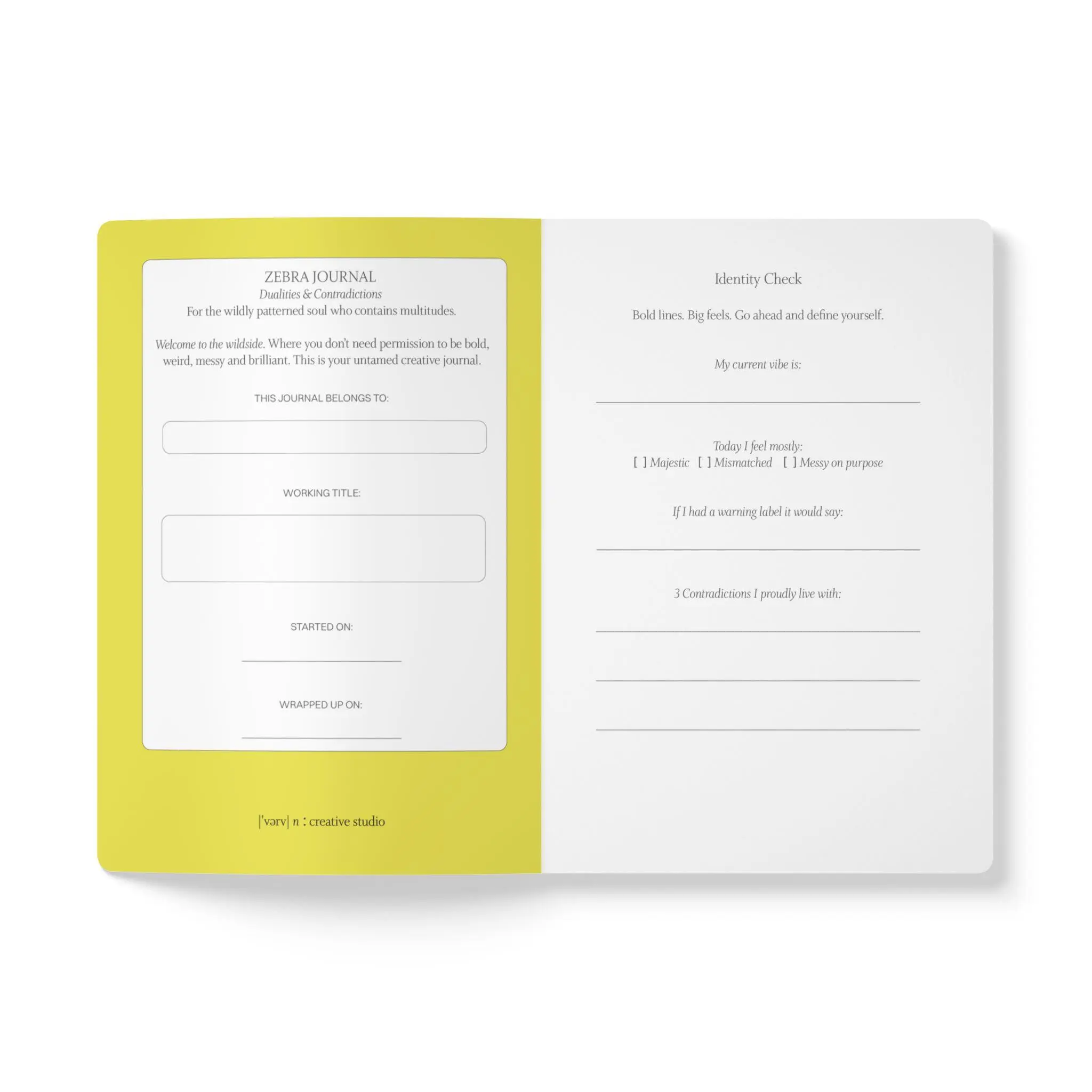 🦓 The Zebra Journal — Dualities & Contradictions is your striped sanctuary for writing, sketching, spiraling, or plotting your next quiet rebellion. Inspired by the bold, wild beauty of zebra print (aka nature’s most fashionable pattern), this softcover journal is made for the multitudes you carry — the contradictions, the clarity, the wild, and the calm.