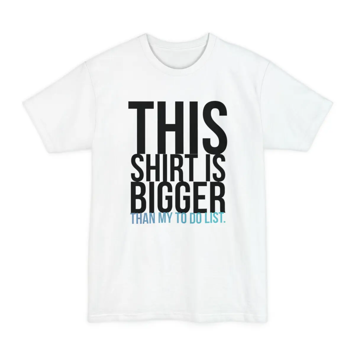 Say it with yo SHIRT! To do lists come in all sizes. Bold Statement Beefy-T® T-Shirt – To Do List. This shirt is a taller take on the classic Hanes t-shirt, the Tall Beefy-T® is three inches longer than the regular size. Available in special sizes from LT (Large Tall) to 4XLT. The shirt has a full cut and a generous fit for comfort.